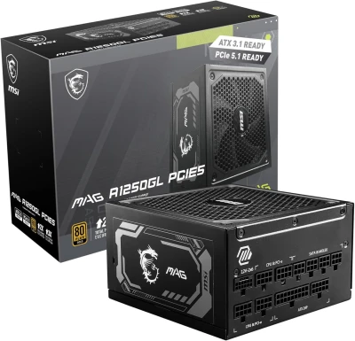 MSI MAG 1250GL PCIE 5 Gaming Power Supply - ATX 3.1 & PCIE 5.1 Ready - Full Modular - 80 Plus Gold Certified 1250W - Compact Size - ATX PSU -