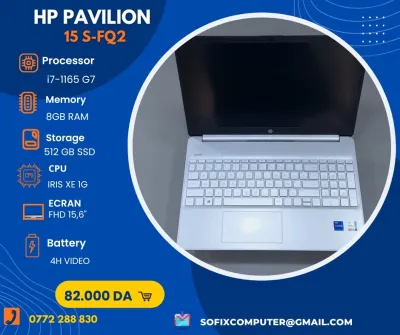 Disponible chez #Sofix computer plusieurs modèles et configurations une garantie de 6 mois LAPTOP HP PAVILION 15 S-FQ2 I7-1165 G7 8G 512G SSD 15,6". CPU: Intel I7-1165 G7 11éme génératio