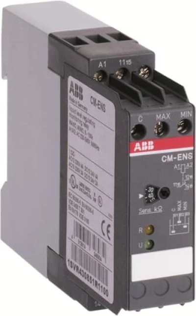 Relais de niveau de liquide CM - ENS largeur 22,5mm , contrôle de niveau de liquides conducteurs , sensibilité 5 - 100kOhm réglable, A1 - A2 = 110 - 130VAC 1 c/o (principe du circuit ouv