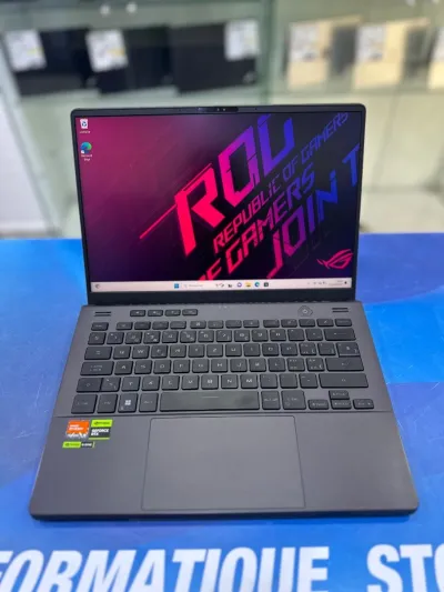 ASUS ROG Zephyrus G14 🔸CORE : RYZEN 9 7940HS 🔸DISC : 01 TB (SSD) 🔸RAM : 16 GB 🔸Écran 14“ OLED 🔸CARTE GRAPHIQUE : RTX 4060 8GB + AMD RADEON 780M 🔸FACE ID 🔸CLAVIER