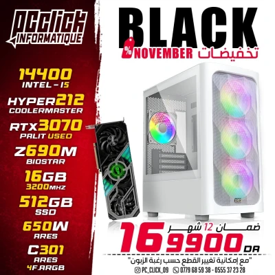 ROCESSEUR : RYZEN 7 5700X TRAY COOLER : XIGMATEK AIRKILLER MOTHERBOARD : B550MHP BIOSTAR RAM : 16GB DDR4 3200MHZ SSD : 256GB NVME CASE : ARES C301 WHITE 4FAN ARGB PSU : 650W ARES GPU