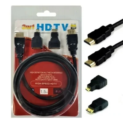 Câble HDMI 1080P 3-en-1 vers HDMI/Mini/Micro/HDMI, adaptateur haute vitesse Câble HDMI 3 en 1 avec 2 adaptateurs, Mini HDTV, Micro HDTV, Compatible avec mobile, ordinateur, TV, jeu. Broche