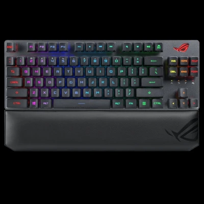 Visez la victoire avec le clavier gamer ASUS ROG Strix Scope RX TKL Wireless Deluxe ! Ce modèle au format TKL et parfaitement adapté pour le FPS se pare de switches opto-mécaniques rouges