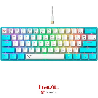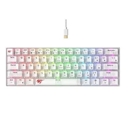 Le Clavier HAVIT KB903L tranparent est un clavier mécanique 60% au design épuré, offrant un rétroéclairage RGB dynamique et des switches mécaniques réactifs, idéal pour les gamers et