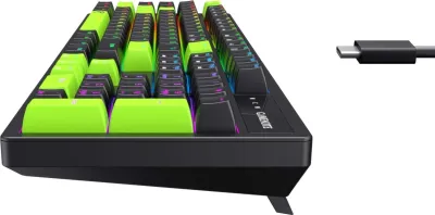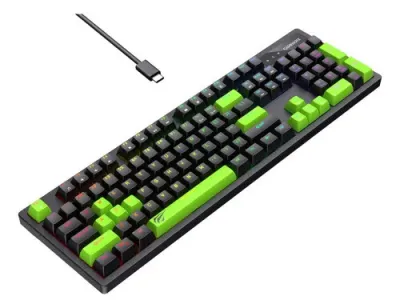 Clavier de jeu Havit KB893L, mécanique, Tacticle SW, 104 touches, touches Fn, RGB, 1,8 m, USB, EN, noir/vert. Interface du lecteur USB Type C Clavier rétroéclairé RGB Caractéristiques P