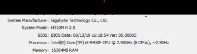 - CPU I5 9004F ( état : très bonne) + son FAN - 2 x 8G ram DDR4 3200gh : comme neufs - carte mère : H310M H 2.0 (moyenne)