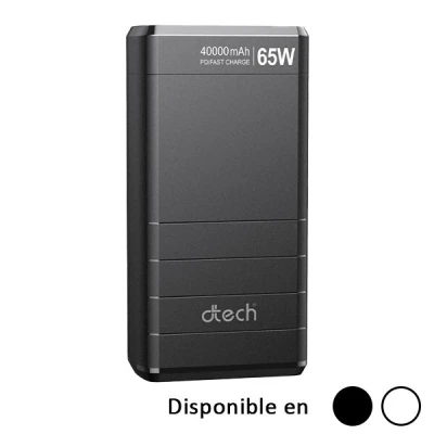 Power Bank D-Tech DPC65 40000 mAh 65w Entrée Type-C1 : 5V/3A,9V/3A,12V/3A,20V/3A; 60W(Max) Sortie Type-C1 : 5V/3A,9V/3A,12V/3A,15V/3A,20V/3.25A;60W(Max) Sortie Type-C2 : 5V/3A,9V/2A,12V/1.5