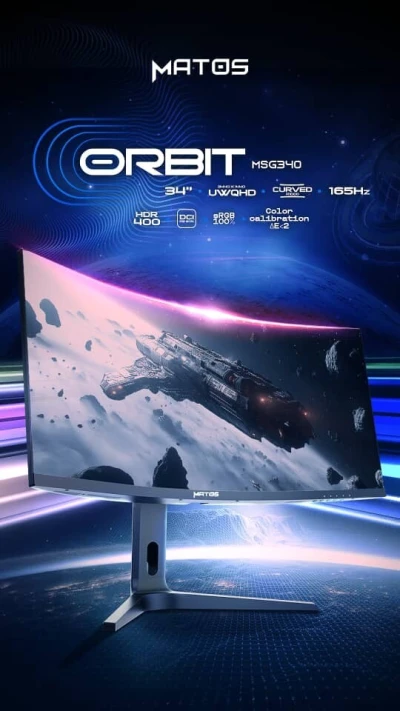 Matos ORBIT MSG340 34 ORBIT Gaming Monitor 34” 3440×1440 with Ultra Fast VA Technology 1- The new generation of fast VA technology with less ghosting and increased responsiveness 2- 1000