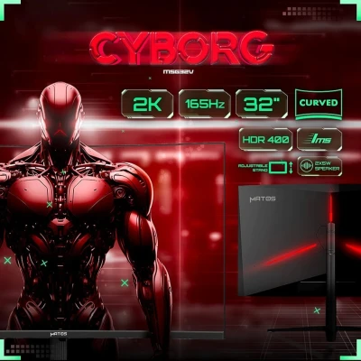 Matos CYBORG MSG32V, With VA Panel ,A Very big 32 “QHD monitor with AMD FreeSync™. Featuring 165 Hz refresh rate speed, 1ms response time, Audio speakers , Headset support, cable manag