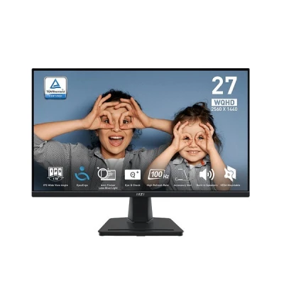 Description MSI Pro MP275Q 27 Écran bureautique WQHD - Dalle IPS 2560 x 1440, 100 Hz, écran Eye-Friendly, Haut-parleurs intégrés, Inclinaison réglable - HDMI 2.0b, DP (1.2a) Le moniteu