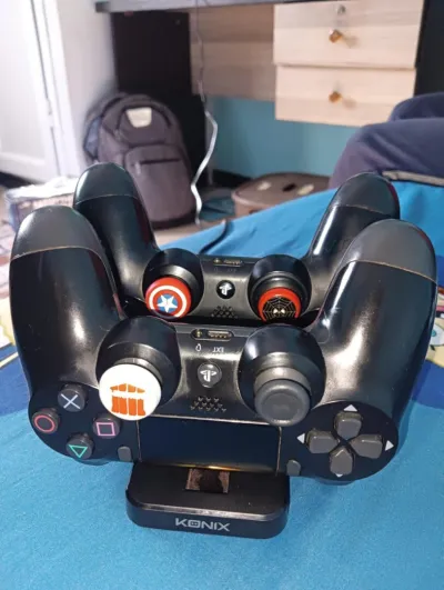 PlayStation 4 slim 1TB online (non flash) Version 12 2 mannetes PS4 (1 original+1 copie) 4 Appuie-pouces (thumb grips) Cable alimentation Cable pour charger les manettes Cable HDMI CD call