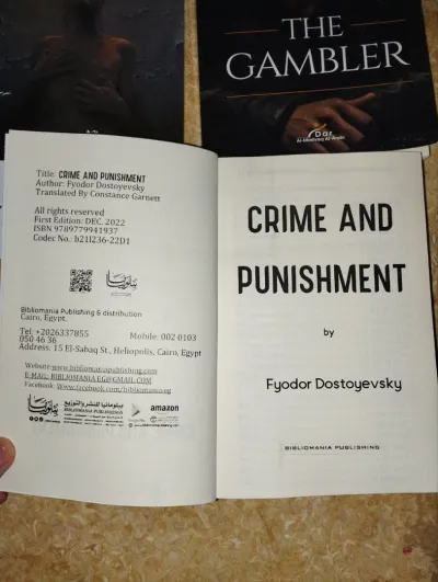 3 English new books : Crime and punishment : Part 1 and 2 : 2500da White nights : 1500 DA The gambler : 1000 DA if you take all of them : 4500 DA. with the last one (تحليق في الر