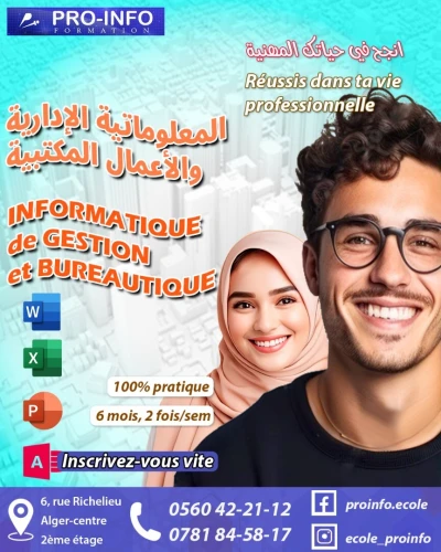 🎓 Formation: INFORMATIQUE DE GESTION ET BUREAUTIQUE 🎯 Cette formation couvre la suite de Microsoft Office de la base jusqu'a un niveau avancé de maitrise de l'outils informatique pou