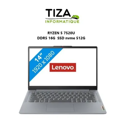 💻 Lenovo IdeaPad V15 💻 * Processeur : AMD Ryzen™ 5 7520U - 4 Cores - 8 Threads - Up to 4.3 Ghz * Ram : 8Go DDR4 * Stockage : 256Go SSD NVme * Ecran : 15.6" Full HD (1920x1080)