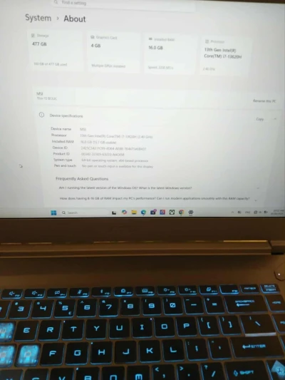 MSI thin 15 b13uc I7 13620H 2.4Ghz Ram 16g 512g ssd Intel uhd graphics Nvidia geforce rtx 3050