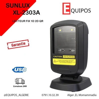 SUNLUX XL-2306A Lecteur code barre fix avec fil 2D Lecture rapide sur papier et ecran ▪️Lecture: 1D 2D QR papier, plastic, ecran Scan : 0-220mm ▪️Refrech : 60 fps ▪️Port : USB