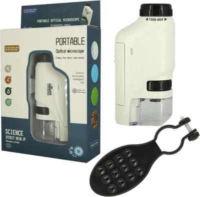 XIANGEN Portable 60X-120X optical microscope with LED light birthday gift for primary and secondary school students Portable optical LED microscope: Using non spherical PMMA optical lenses,