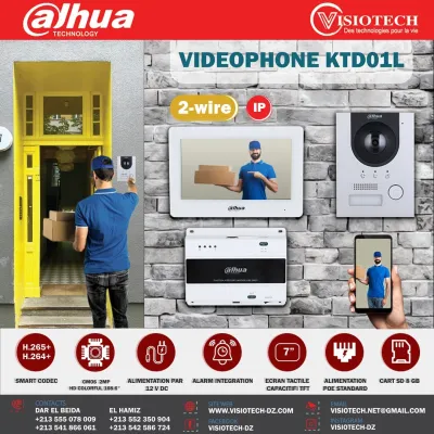 Dahua DH-KTD01 Ensemble Dahua KTD01L avec système à deux fils Sécurité complète Profitez d'une protection totale grâce au système Dahua KTD01L, spécialement conçu pour surveiller