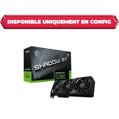 🎮 Carte Graphique MSI GeForce RTX 5080 16G Shadow 3X OC 💥 Puissance, performance et design pour les gamers exigeants ! La MSI GeForce RTX 5080 16G Shadow 3X OC repousse les limites du