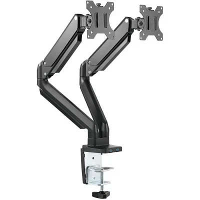 Pipe-shaped Double monitor arm with a counterbalance spring Designed for screen sizes ranging from 17"" to 32"" Weight Capacity per screen: 0 to 8kg Allows effortless positioning and alignme
