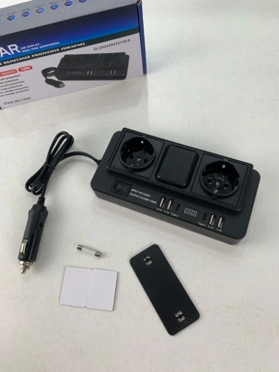 Un convertisseur pratique qui transforme le courant 12V de la voiture en 220V pour brancher vos appareils (PC, téléphone, etc.). Puissance : 150W (pic jusqu’à 300W) Sorties : 2 prises