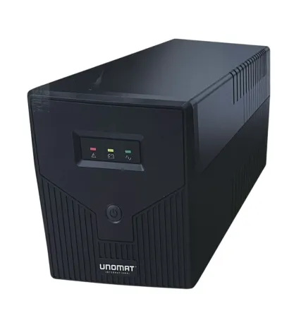 ONDULEUR UNOMAT UPS UM-IEC 1050VA (positionnement horizontal) : Puissance : 1050 VA / 670 W Nombre de sorties : 6 prises universelles + 1 port USB Tension d'entrée : 155 ~ 270 V Fonction A