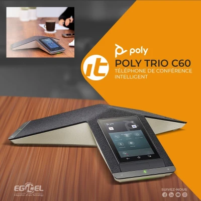 Le Poly Trio C60 est un poste de conférence téléphonique intelligent, idéal pour les moyennes et grandes salles de réunion (+/- 8 personnes). En effet, grâce à ses 3 microphones à 36