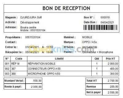 MaRéparation est un logiciel pour la gestion de toutes les types des réparations (téléphone mobile,micro ordinateur, télévision, ...etc) efficace et facile à l'utilisation (intuitif)