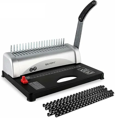 🔹 Machine à relier S100 ✅ Type : Machine à reliure plastique avec anneaux plastiques (Comb Binding). ✅ Mécanisme : Une poignée supérieure unique combinant perforation et reliure.