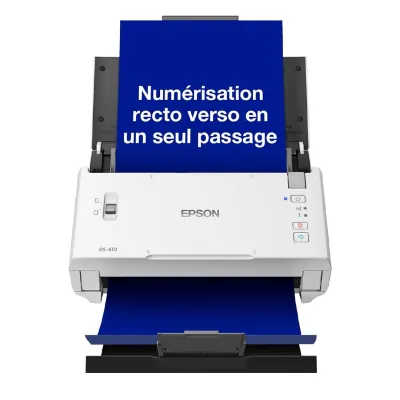 Scanner A4 35 pages/minute en simple face, et 70 images/minute en mode duplex (A4, 300 dpi). numérisation recto/verso (duplex) en une passe. Résolution optique : 600 × 600 dpi. Bac d’a