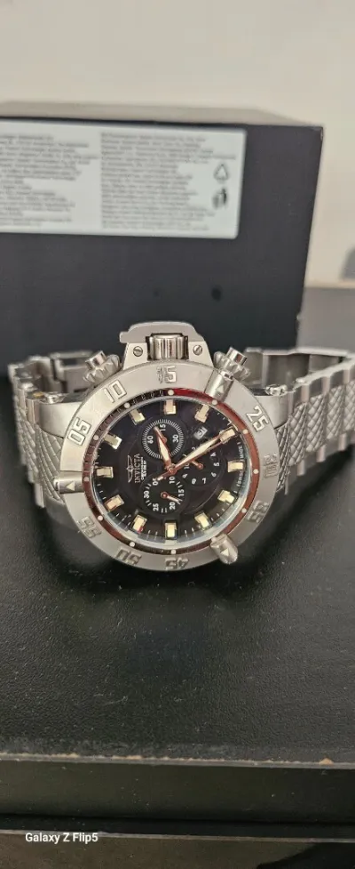 Une belle montre d'occasion acheter au Canada, cadrant 50 mm, étanche jusqu'à 500m, mouvement Swiss, très bon état.