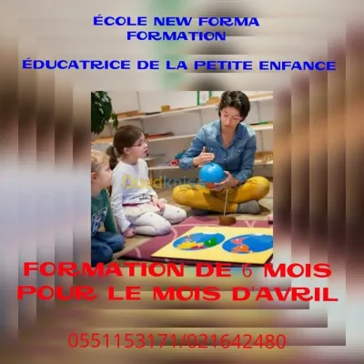 deuxième session début Avril formation éducatrice de la petite enfance programme: psycho - pédagogique - Animation - Travaux manuels - stage pratique assurée par l'école.