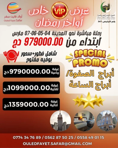 ****عمرة أواخر رمضان بأفضل الأسعار/عرض مميز رمضان******** تعلن وكالة أولاد فايت سفر السياحة والأسفار عن تنظيـ