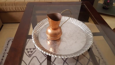 عندي إبريق و صينية تاع نحاس للبيع الصينية:3000دج الإبريق: 3000دج