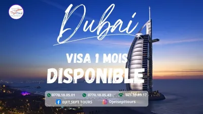 Ouedkniss visa dubai Addeche Voyages vous propose des visa dubai : Visa touristique ( 30Jours ) = 24000DA ; Document a fournir : -un scan du passeport couleur. -Photo -Extrait de nais