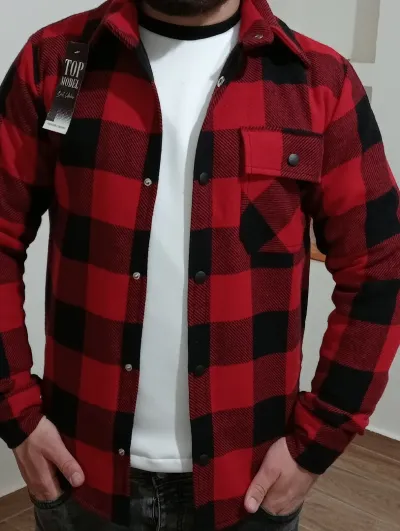 سترة كاروهات رجال أحمر *أسود بتصميم كلاسيكي خامة دافئة ومريحة ،لمسة عصرية مناسبة للخريف والشتاء بسعر جد