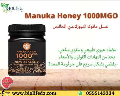✅ عسل مانوكا هو نوع خاص من العسل الطبي بتركيز MGO 1000، وينتجه فقط النحل الذي يتغذى على رحيق وحبوب لقاح أز