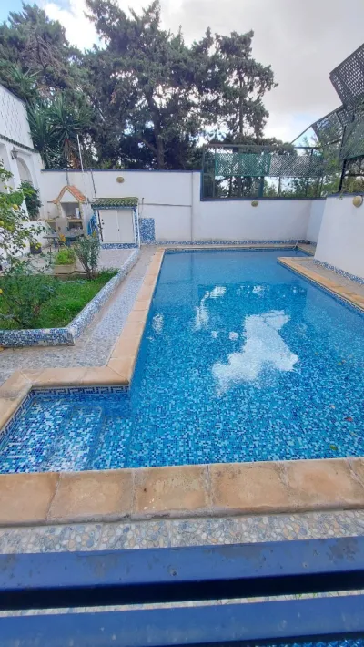 Loue F5 de 200m avec une entrée indépendante capacité de 8 personnes plus garage salle de sport et piscine Quartier hey el bina Dely Brahim Chaque pièce avec climatisation Jardin agr