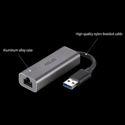 Adaptateur Ethernet USB Type-A 2.5G Base-T avec rétrocompatibilité de 2.5G/1G/100Mbps USB-C2500 ASUS Caractéristiques : 1. Mise en réseau hyper rapide 2,5 Gbps - fournit une connexion s