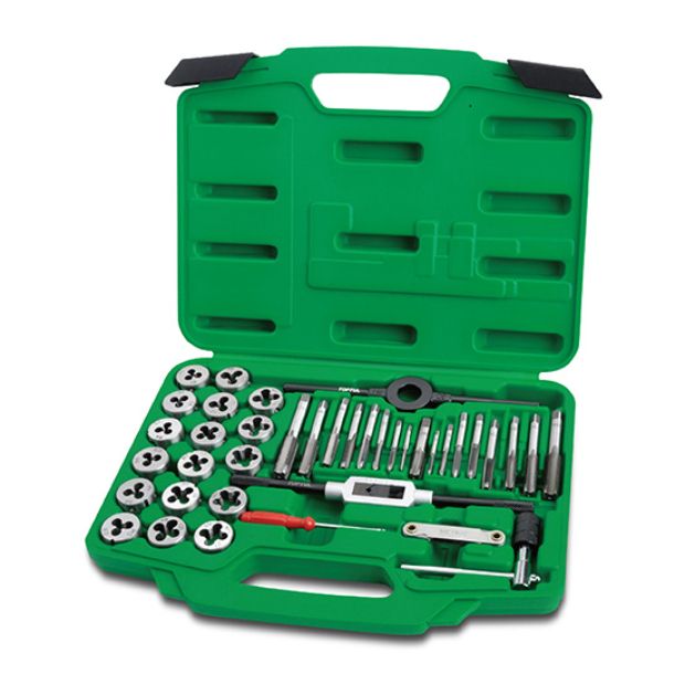 Jeu de tarauds et filières ensemble de 40pcs (M3 - M12) JGAI4001 Description ITEM NO: JGAI4001 BLOW CASE: W300 x D230 x H53 (mm)