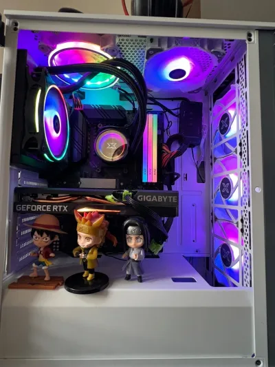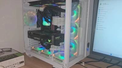 *CPU i7 14700K *Cpu Contact Frame *Ram 2x16 corsair Vengeance white *Carte-mère Asus Tuf Z790 plus wifi *Case Hyte Y60 *Vertical screen fullhd *PSU fsp 1200w* *Watercooling EK aio elite 28