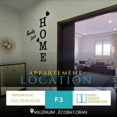 Notre agence immobilière hfy vous propose un f3 on location a cheraga 5ème étage chauffage central cuisine équipé climatiseur