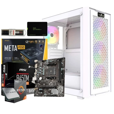 Unite Gamer AMD RZN5 3400G/CM B450M/DDR4 8G 3200Mhz/SSD 256GB /PSU 550W/CASE NOX NEXUS full White plus 4Pcs Fans RGB