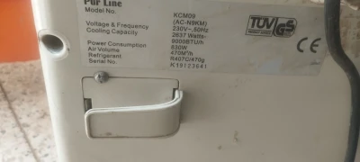 مكيف هوائي نوع سامسونغ Samsung بقوة 9000BTU, عنده مشكل الكومبريسور في المحرك الخارجي ،اما الوحدة الداخلية فهي غ