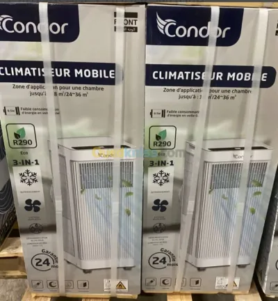 Climatiseur Mobile Condor 9000BTU 3 en1 Gaz Réfrigérant R290 9k btu Mode De Fonctionnement : 3 en 1 (Refroidissement, Ventilation, Déshumidification) 3 vitesse Options Affichage LED, F