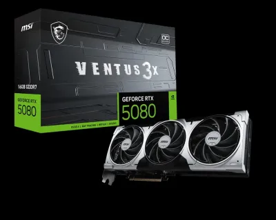 SPECIFICATIONS Marketing Name GeForce RTX™ 5080 16G VENTUS 3X OC PLUS Modèle G5080-16V3CP Processeur graphique NVIDIA® GeForce RTX™ 5080 Cœurs 10752 unités Mémoire 16 Go GDDR7 Bus
