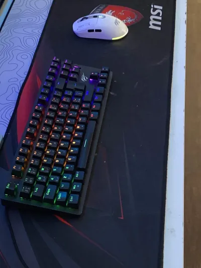 (utilisé) Clavier Mecanique Gaming 75% Noir -RGB- Blue Switch + Souris Gaming blanc sans fil/bluetooth RGB + Tapis Souris Noir et rouge 7800da fi plaset 10300da !! t9der tbdel les styles