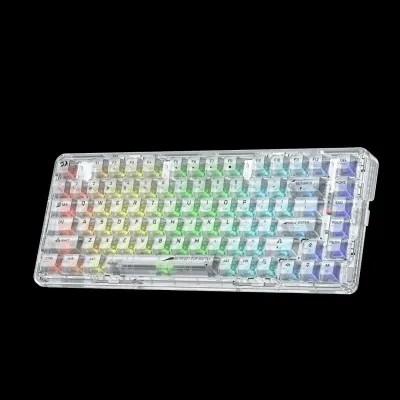 Features & Compatibility Specification: Keyboard type: transparent three modes mechanical keyboard Connection mode: 2.4G+BT+wired Number of buttons: 61 Mechanical shaft: customized hot swap