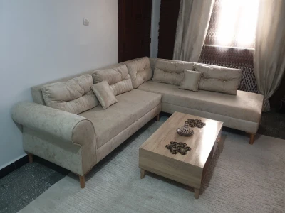 À vendre un fauteuil en forme L en parfait état, acheté neuf en Aout 2024 et très peu servi. "pieds en bois d’hêtre" Le prix est de 5 millions. Ville de Setif Lللبيع صالون
