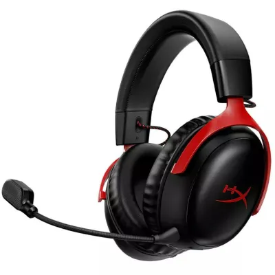 HyperX Cloud III Wireless (noir/rouge) Casque gaming fermé sans fil - RF 2.4 GHz - son spatial DTS Headphone:X - micro amovible à réduction de bruit - cadre en aluminium - arceau en mouss